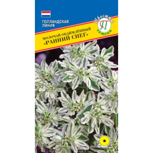 Однолетник. Красивое садовое растение с очень декоративными листьями. Растение прямостоячее, кустистое, высотой 60 см. Листья овальные, зелёные, к началу цветения в августе их края окрашиваются в серебристо-белый цвет. Зацветает на 2-3 недели раньше, чем «Горный снег». Применяется для групповых и единичных посадок, идеально смотрится в миксбордерах как фоновое растение среди ярких летников. Используется для срезки, составления различных живых композиций.Посев семян осуществляют в марте-апреле в рассадные ящики, либо в конце апреля – начале мая в открытый грунт под плёнку. Перед посевом семена рекомендуется стратифицировать в течение 45-60 дней при температуре 3-5 градусов. Семена равномерно распределяют по поверхности влажного компоста, слегка присыпают вермикулитом, песком или компостом. Для прорастания молочая необходима темнота, поэтому рассадные ящики до момента всходов накрывают непрозрачной плёнкой. При температуре 18-20 градусов всходы появляются через 8-12 дней. После появление 2-3 пар настоящих листочков сеянцы пикируют в отдельные горшочки. На постоянное место рассаду высаживают с шагом 25-30 см, когда минует угроза заморозков. Растение теплолюбивое, хорошо растёт на открытых, солнечных и полузатенённых местах, защищённых от сильных ветров. Предпочитает плодородные, рыхлые почвы. Обязательна прополка и рыхление. В период сухой и жаркой погоды растения регулярно поливают. Не переносит заморозков.