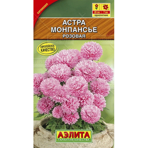 Невысокая (всего 15 см) астра с необычайно обильным цветением. Густомахровые шаровидные соцветия Ø 6-8 см покрывают кусты настолько плотно, что листвы практически не видно. Астры светолюбивые, холодостойкие, не любят застоя воды в почве. Компактные, выравненные кустики хорошо выглядят по переднему краю смешанных цветни-ков, из них получаются красивые бордюры вдоль садовых дорожек. Сортосерия МОНПАНСЬЕ идеально подходит для горшечного выращивания на балконах и террасах.