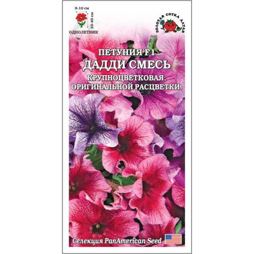 Серия Дадди выгодно отличается оригинальной расцветкой: каждый цветок имеет рисунок из четких прожилок, всегда темнее, чем основной цвет. Растение компактное, хорошо ветвится от основания. Цветки воронковидные, крупные, яркие. Цветение обильное и длительное. Петуния незаменима при украшении балконных и оконных ящиков, подвесных кашпо и корзин. Прекрасно смотрится при создании клумб и бордюров