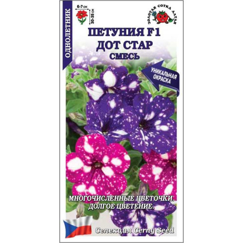 Уникальная петуния, чья необычная расцветка меняется при жаре и изменчивой погоде. Точки и пятнышки различной формы и размера, разбросанные по темно-фиолетовому и ярко-розовому фону, напоминают звездные скопления, а многочисленные цветочки – оконца, раскрывающие тайны вселенной. Петунии этой серии не болеют и быстро восстанавливаются после дождя, прекрасно подходят для цветников и контейнеров