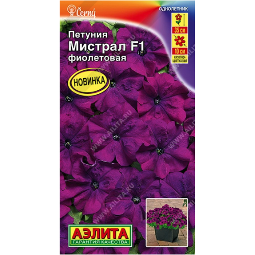 Новая современная серия обильноцветущих петуний от чешской компании ?ern? c крупными цветками диаметром 8-10 см. Гибриды «Мистрал» отличаются высокой декоративностью и устойчивостью растений к переменчивой погоде, что особенно важно для центральной полосы. Они формируют низкорослые и густые кустики красивой компактной формы, высотой около 30-35 см. Привлекательные оттенки венчиков этих петуний преобразят балконные контейнеры, садовые вазоны и клумбы, наполнив цветочные композиции летними красками.