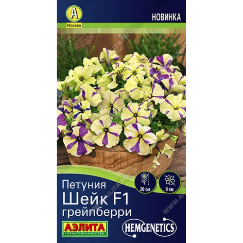 Многоцветковым петуниям голландской селекции из серии «Shake F1» свойственны генетическая карликовость кустиков и фантастически многогранная окраска крупных цветков диаметром 7-8 см. Удивительные переливы желтых и карминово-красных оттенков венчиков выглядят живописно и динамично. Каждый кустик – неповторимое чудо природы. Высота растений 15-20 см, ширина около 20-25 см. Цветение раннее, равномерное и длительное – исключительная декоративность обеспечена до конца теплого сезона, она отмечена наградой международного уровня. Петунии идеально подходят для вазонов и ковровых посадок.