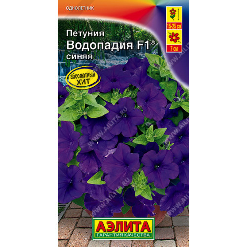Абсолютный хит! Серия многоцветковых петуний каскадного типа, которая отличается совершенно новой полуампельной формой. Уникальность этих гибридов в том, что новые цветоносные побеги образуются без прищипки в пазухах листьев в середине куста, не оставляя пустот. Растения формируют пышные кустики, высотой 15-25 см. Поникающие побеги длиной до 70 см полностью усыпаны яркими насыщенными цветками ? 7 см и спускаются восхитительным водопадом. Гибриды устойчивы к повышенным температурам и неблагоприятным погодным условиям. Петунии Водопадия F1® наилучшим образом подходят для подвесных кашпо и корзин.