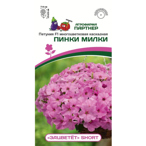 ЗАЦВЕТЁТ Short - невероятная каскадная петуния, настоящий цветочный шар! Прекрасный выбор для кашпо и вазонов, хорошо смотрится в единичных и групповых посадках в грунте. Крепкие растения отлично ветвятся, самостоятельно, без формирующей обрезки, наращивают компактный куполообразный куст диаметром 60 см, который не теряет своей декоративности в течении всего сезона. Благодаря коротким междоузлиям растение формирует так много цветов, что они полностью закрывают собою зелень. Несомненным достоинством петуний этой серии является способность молниеносно восстанавливаться после дождя, а также слабая чувствительность к длине светового дня, что обеспечивает обильное цветение в течение всего сезона. Растения прекрасно адаптированы к перепадам температур и неблагоприятным погодным условиям. Чтобы петуния полностью раскрыла свой потенциал, рекомендуем объем кашпо от 10 л на одно растение и схему посадки в грунте – 40х40 см