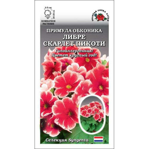 Эффектное комнатное растение, обильно цветущее круглый год. Красивые сердцевидные листья собраны в компактную розетку, над которой на прочных цветоносах возвышаются зонтиковидные соцветия. Цветочки простые, крупные, ярко-красные с белой каемкой. Примулы серии Либре безопасны для аллергиков, т. к. их листья не выделяют примин!