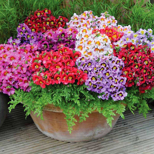 Экзотические цветки, похожие на маленькие орхидеи. По мере нарастания цветения образуют сплошную яркую пирамиду. Зрелище захватывающее! Лист необычный, рассеченный. Цветение обильное и продолжительное