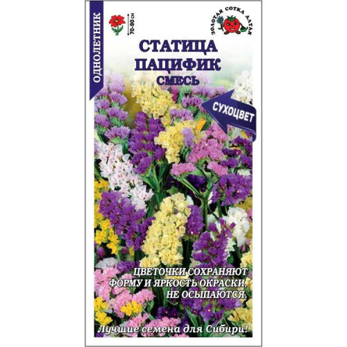 Декоративное растение, формирующее до 15 прямостоячих побегов, которые венчаются крупными (10-12 см) щитковидными соцветиями. Мелкие цветочки всевозможных расцветок, высыхая, сохраняют форму и яркость, не осыпаются. Кермек в основном выращивается для срезки и создания композиций из сухих цветов. Отлично подходит для оформления цветников