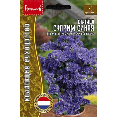 Один из самых популярных сухоцветов, лучший для зимних букетов! Яркий, неувядающий букет служит оригинальным сувениром, а также изысканным украшением любого интерьера. По этой причине миллионы садоводов проводят выращивание статицы у себя на даче. Растение высотой до 75 см. Высушенные цветки долго сохраняют свою окраску. Цветет обильно с июля до заморозков. Используют для цветочных аранжировок, рабаток, миксбордеров.