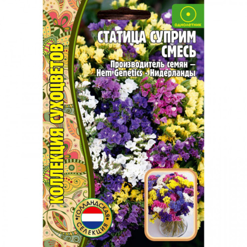 Один из самых популярных сухоцветов, лучший для зимних букетов. Растение высотой до 75 см. Высушенные цветки долго сохраняют свою окраску.