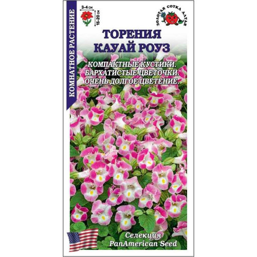Торении серии Кауай образуют компактные шарообразные кустики, отличаются ранним зацветанием, обильным и исключительно длительным цветением. Цветы белые с ярко-розовыми краями лепестков и желтым пятном на нижней губе, бархатистые, напоминают миниатюрную глоксинию. Торении прекрасно подходят как для контейнеров, так и для цветников